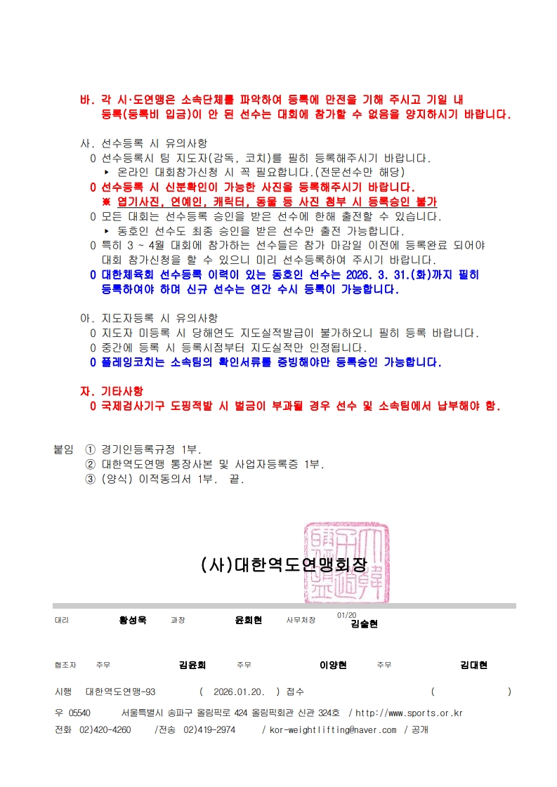| ÆÄÀÏ | (°ø¹®) 2026³âµµ °æ±âÀεî·Ï ½Åû¾È³».pdf (ºÙÀÓ 1) °æ±âÀÎ µî·Ï ±ÔÁ¤(20251001).hwp (ºÙÀÓ 2) (´ëÇÑ¿ªµµ¿¬¸Í)»ç¾÷ÀÚµî·Ï,ÅëÀå»çº».hwp (ºÙÀÓ 3) (¾ç½Ä) ÀÌÀû µ¿ÀǼ.hwp | ||